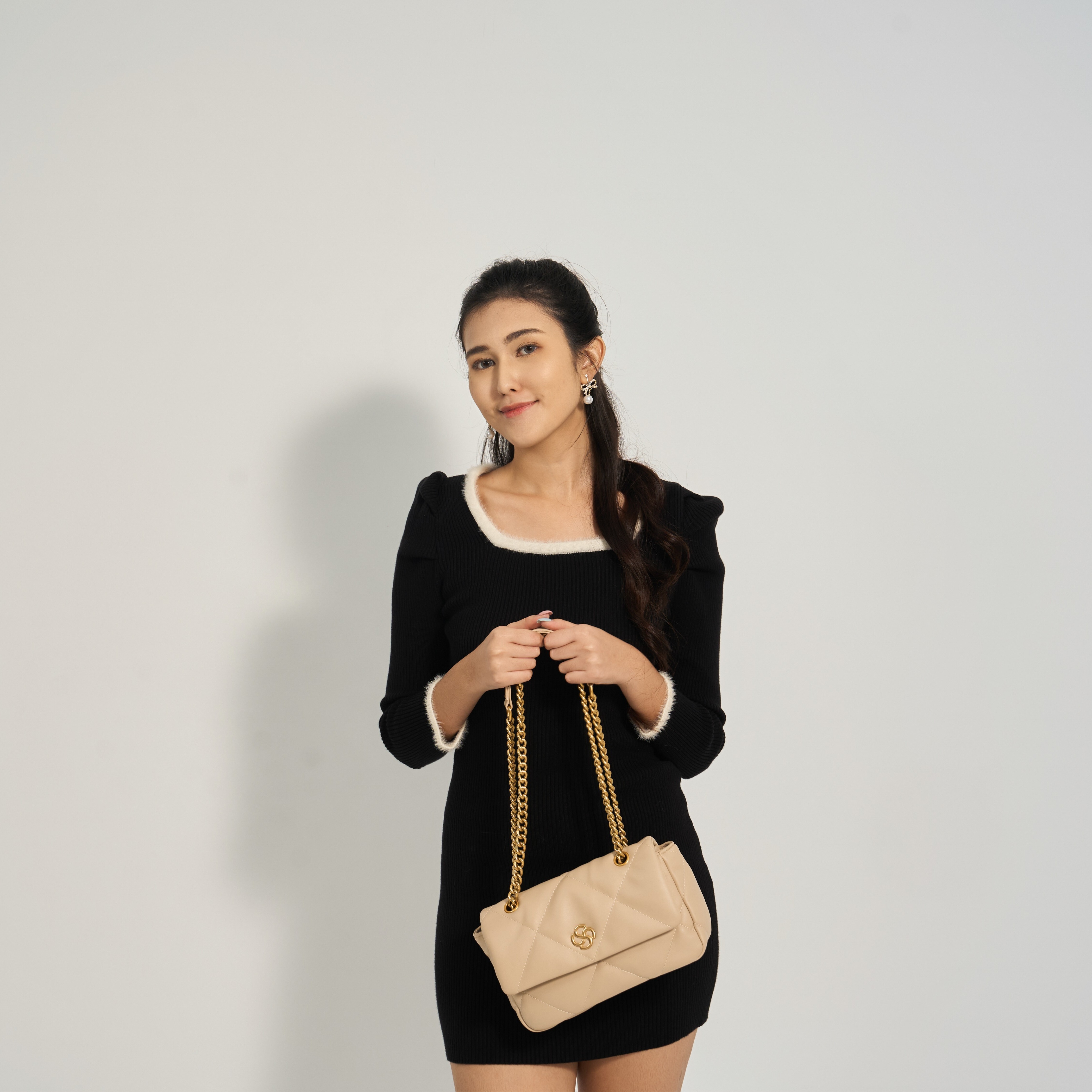奶茶色在冬天特別好搭:和大衣、針織、圍巾的暖調更協調,也能讓整體看起來更柔和有氣質;菱格與鏈條五金則讓造型自帶精緻亮點,最不容易失手。