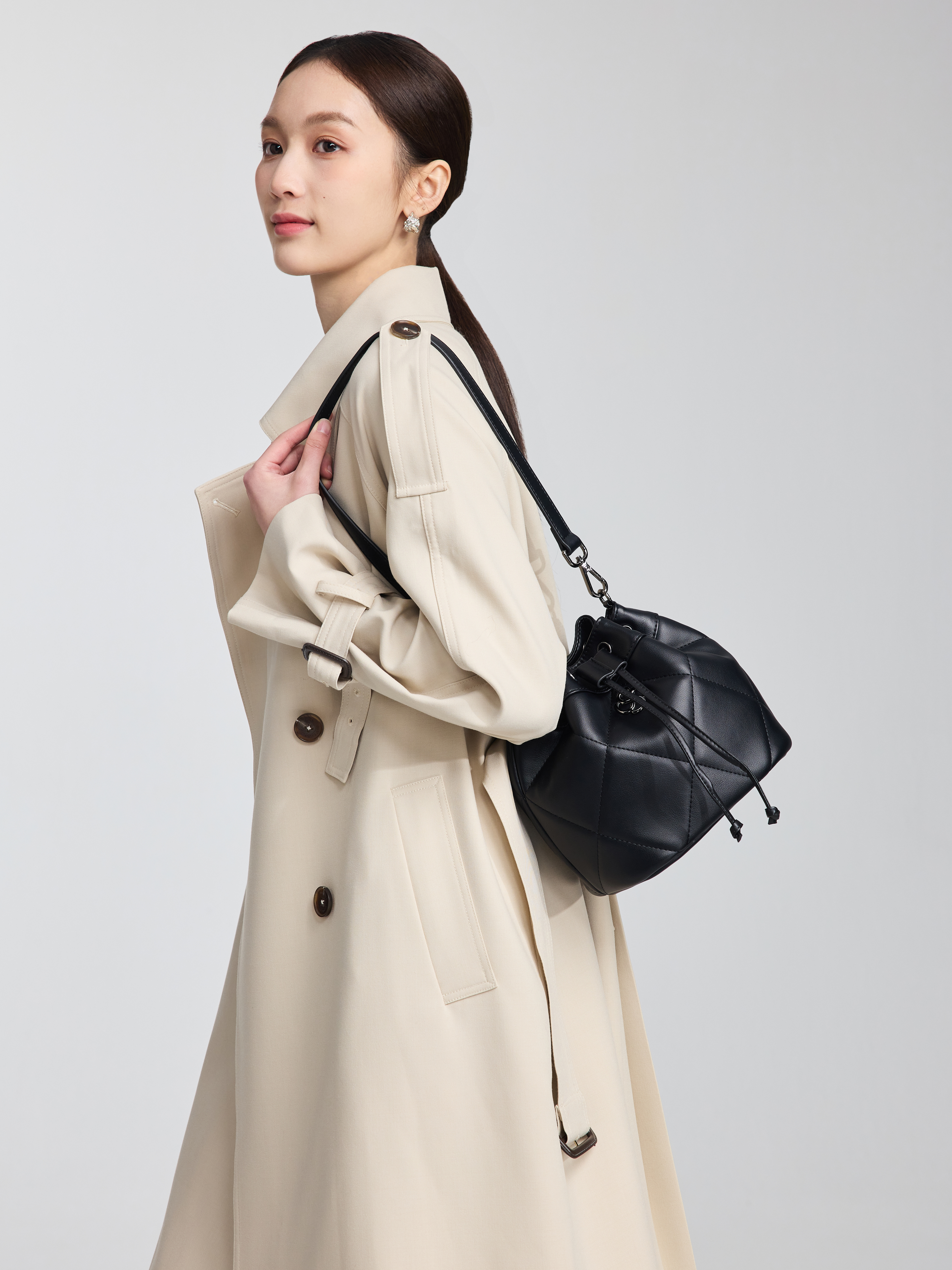 黑色水桶包的魅力在於「鬆弛但不邋遢」:抽繩輪廓自帶休閒感,但真皮材質能把質感撐住,不會像布料水桶包那樣容易顯得過於居家。 這種包型特別適合需要高頻率使用的人:你可以快速放入手機、鑰匙、短夾、補妝小物,也能在日常移動中保持取物順手。 若你常穿極簡(黑白灰)、或常穿大地色(奶茶、咖啡、卡其),黑色水桶包可以當作「永遠不出錯的收尾」。