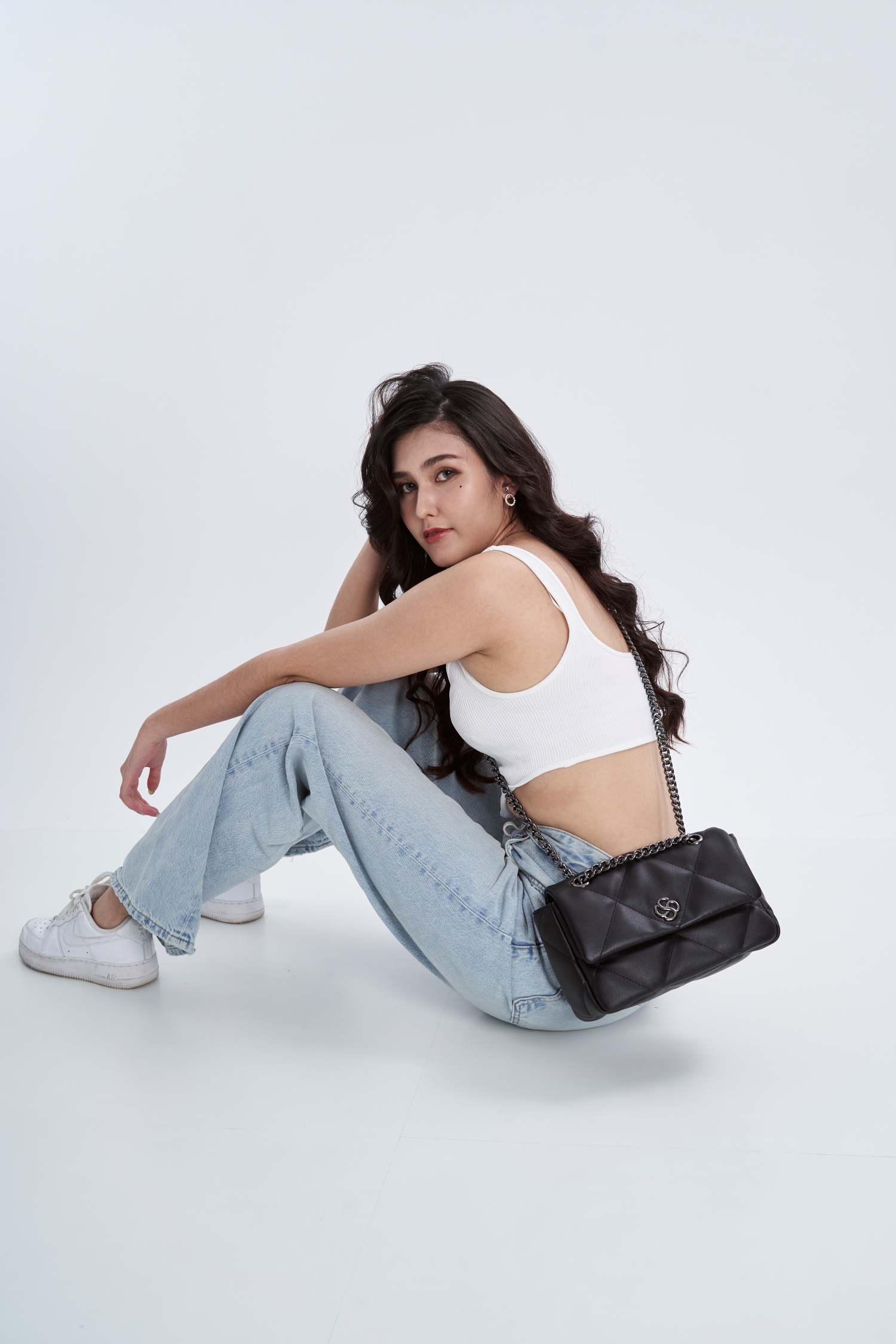 黑色鏈條大包的定位,是「把你整個人變得更有完成度」:鏈條線條會把視線往上拉,菱格紋理會把黑色做出層次,讓黑不只是黑,而是「有細節的黑」。 大款尺寸在實用性上也更友善:能容納更多日常必需品,卻仍保有都會感輪廓,適合想兼顧容量與質感的人。