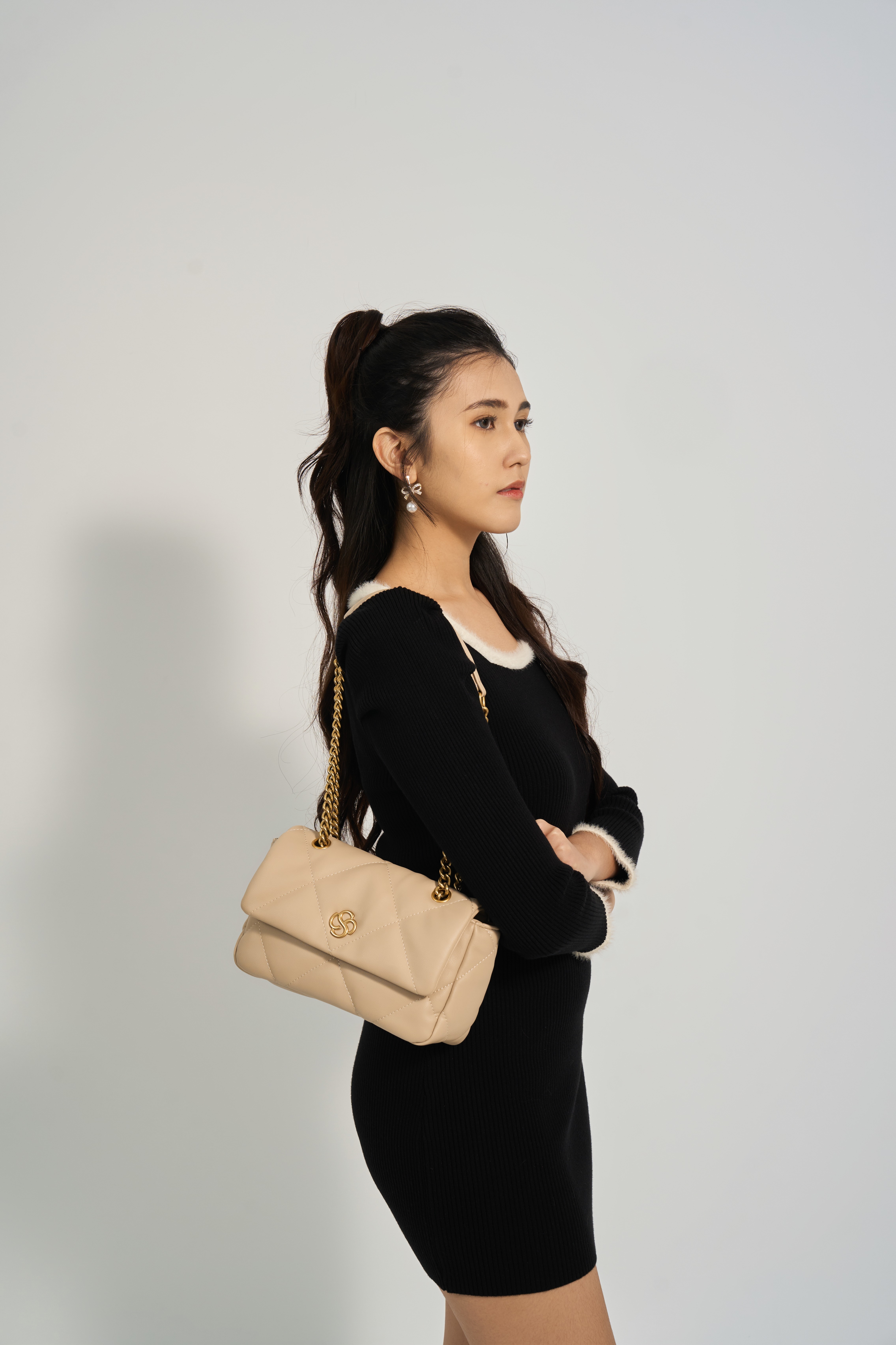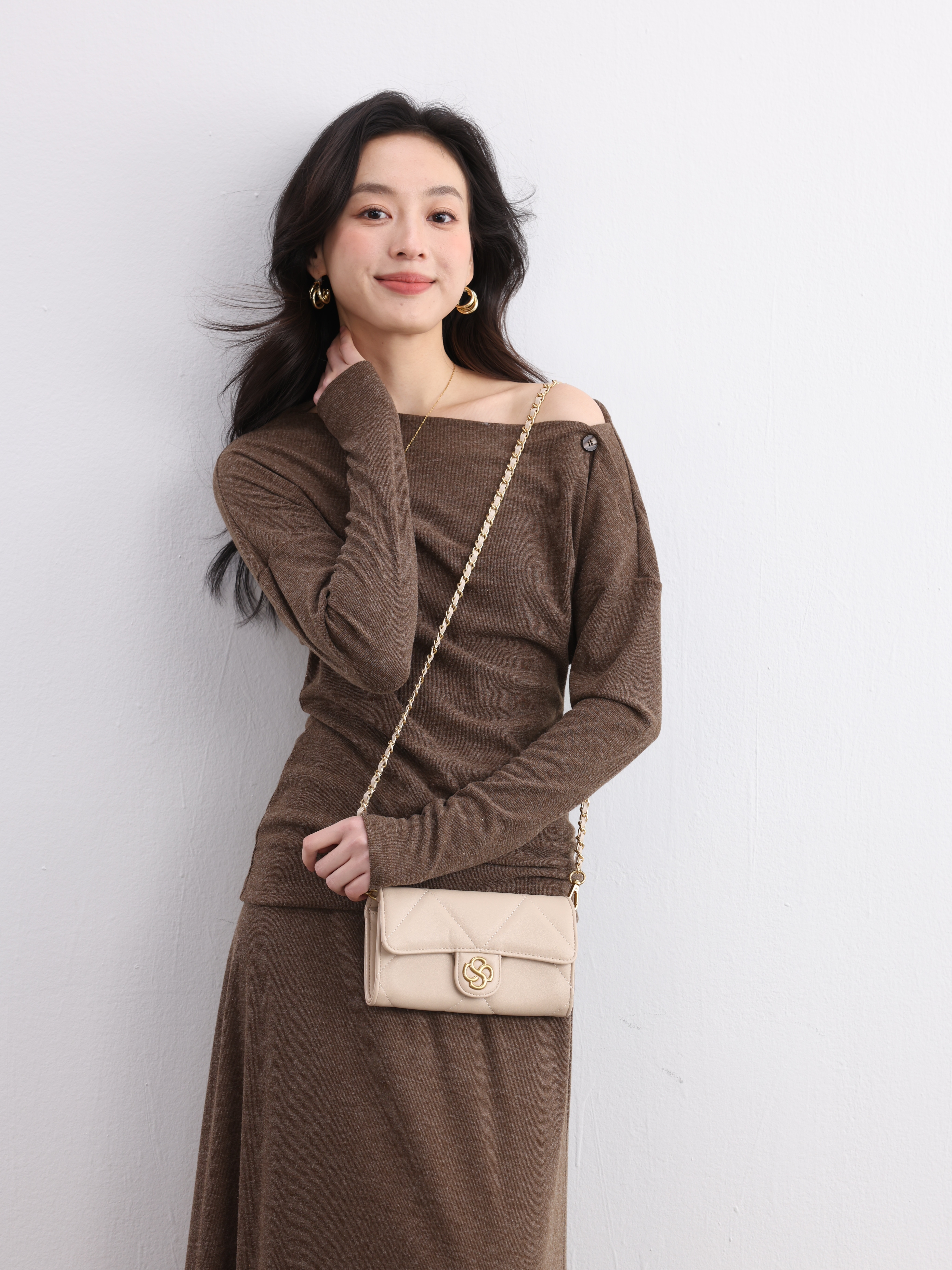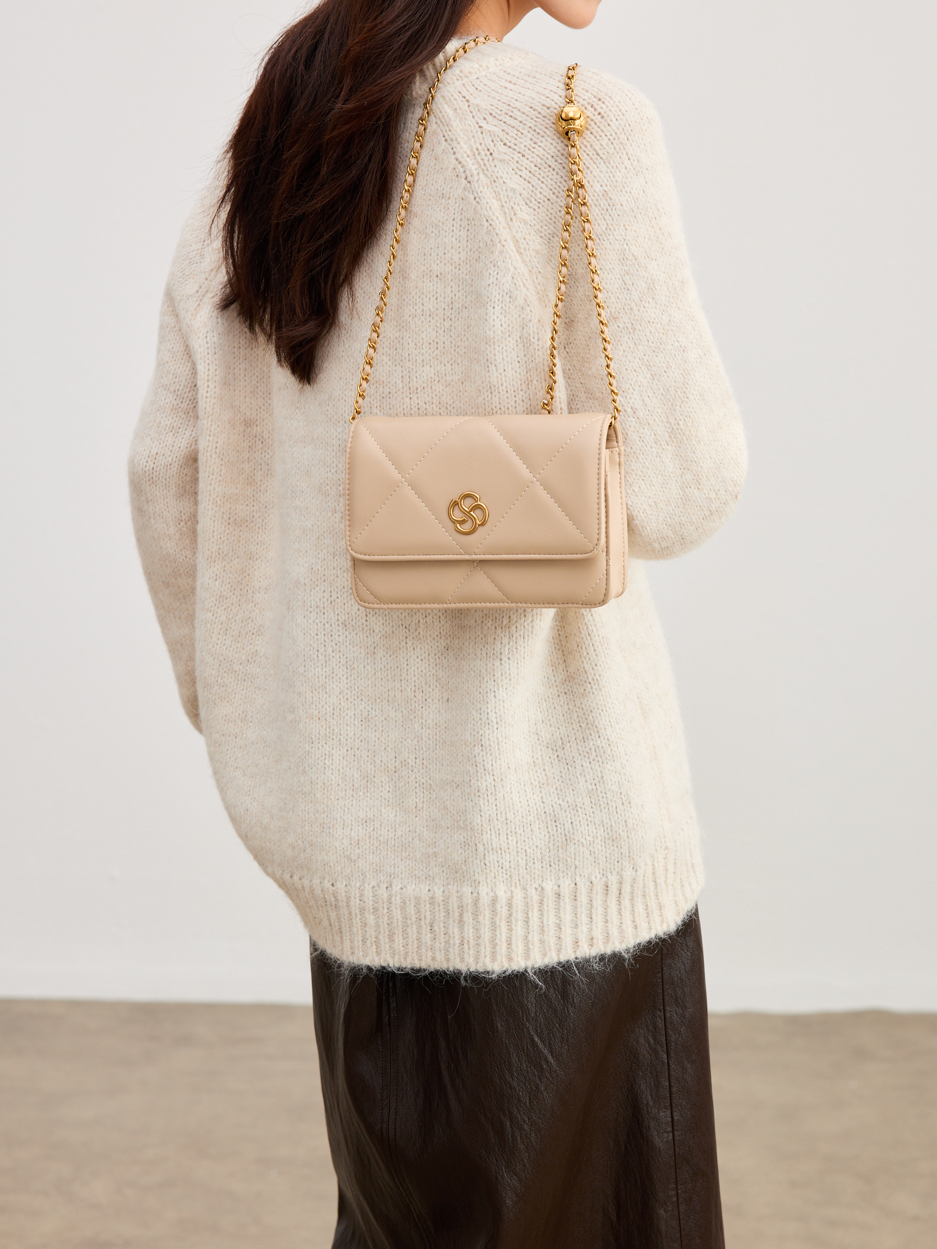 如果你喜歡 WOC 的俐落,但又希望更有「造型亮點」,金球鏈條會是一個非常有效的細節語言:它把包包從「功能型單品」提升到「造型型配件」。 奶茶色搭配金屬細節,最能做出溫柔但有存在感的都會氛圍,尤其適合你穿得很簡單時(素T、針織、襯衫),用包包把穿搭拉出重點。