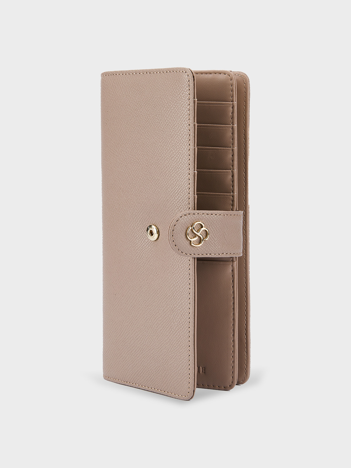 你的包包顏色策略,不只體現在包款本身,也體現在「每天會拿出來」的小皮件上。 奶茶色長夾的優勢是它能與大部分包色協調:放進黑包不突兀,放進白包也不顯髒,搭配灰色包則會有柔和層次。 手掌紋理在視覺上更有質感,也更耐看耐用,適合想把日常細節做得更精緻的人。