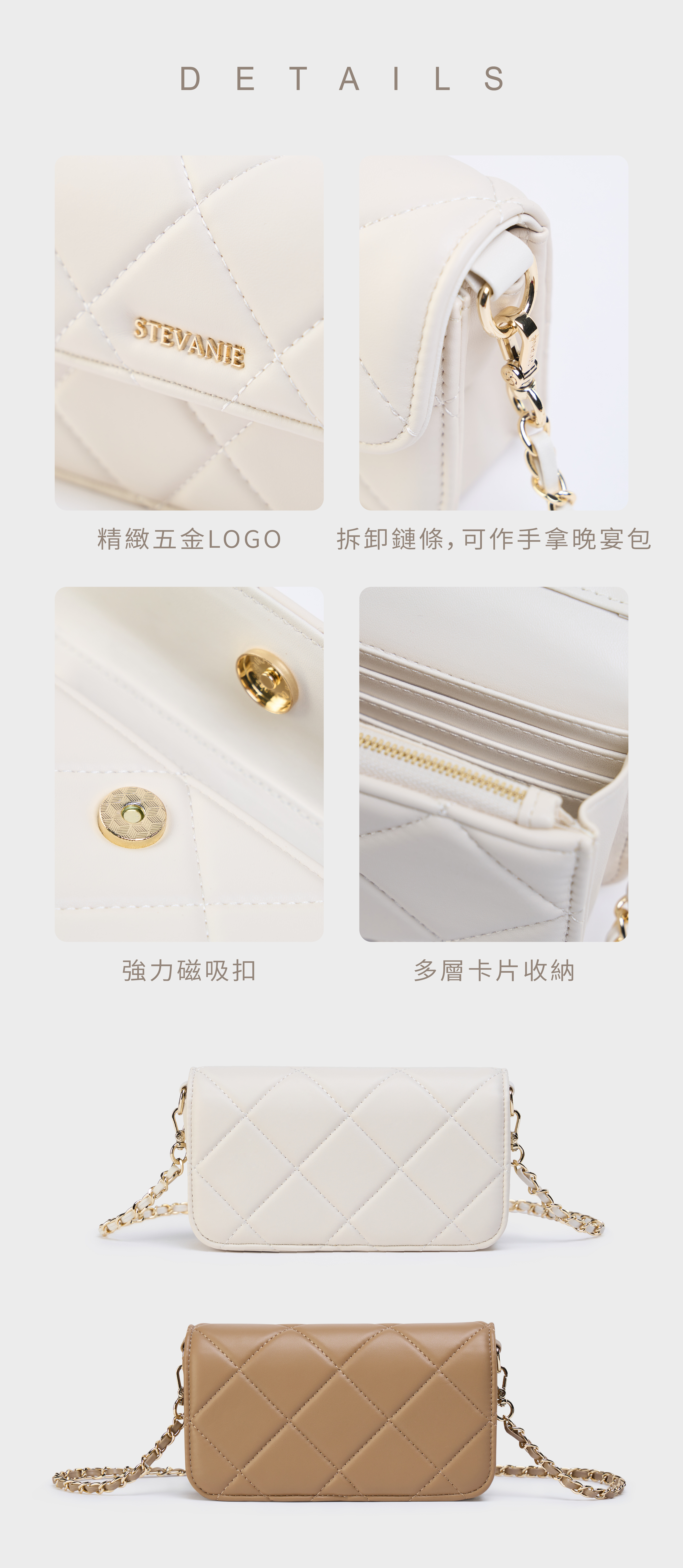 The detachable chain allows it to be used as a clutch or long wallet that fits daily essentials like your phone and tissues.