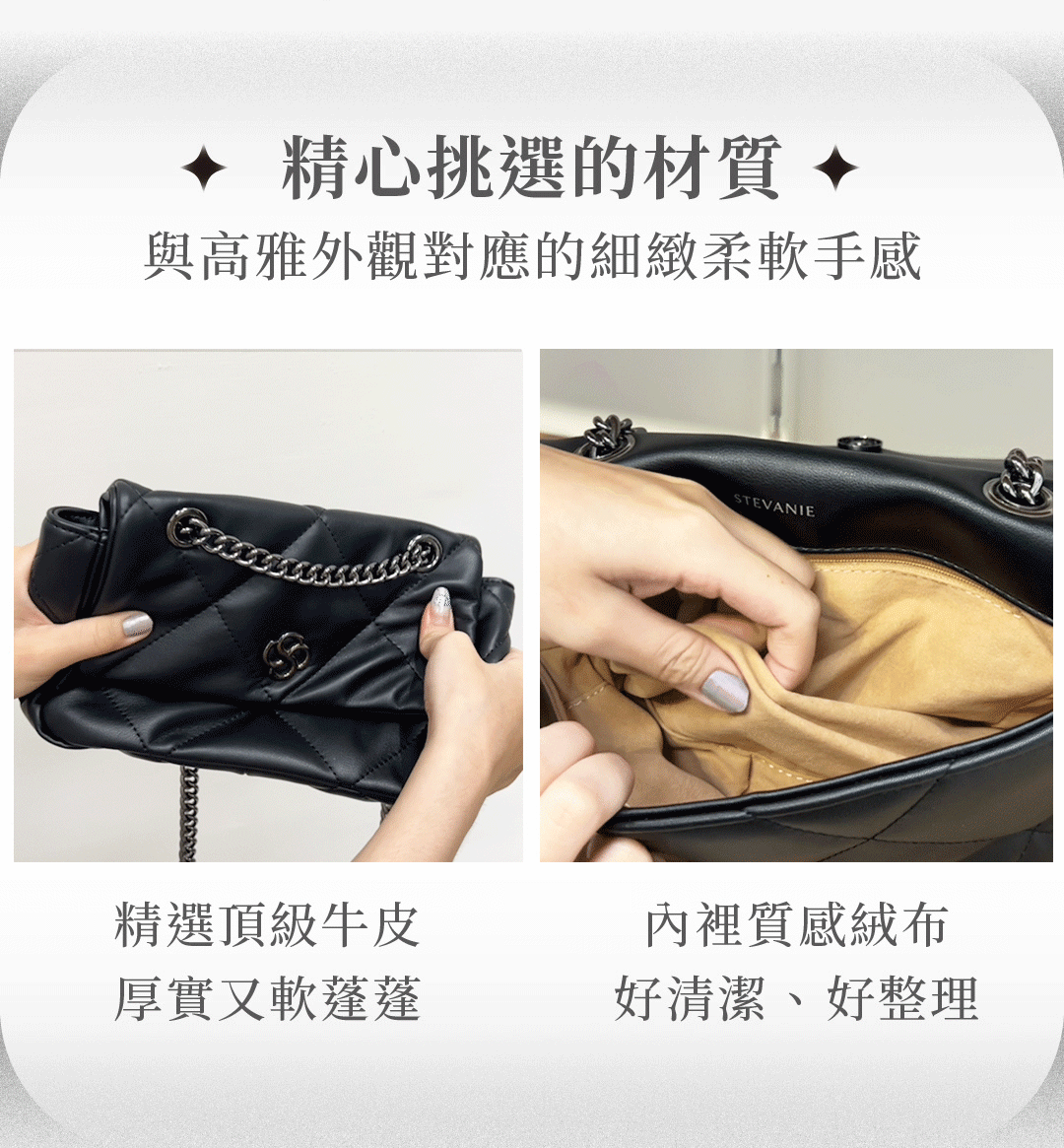 時髦菱格繡花,搭配高級進口牛皮,質感滿分