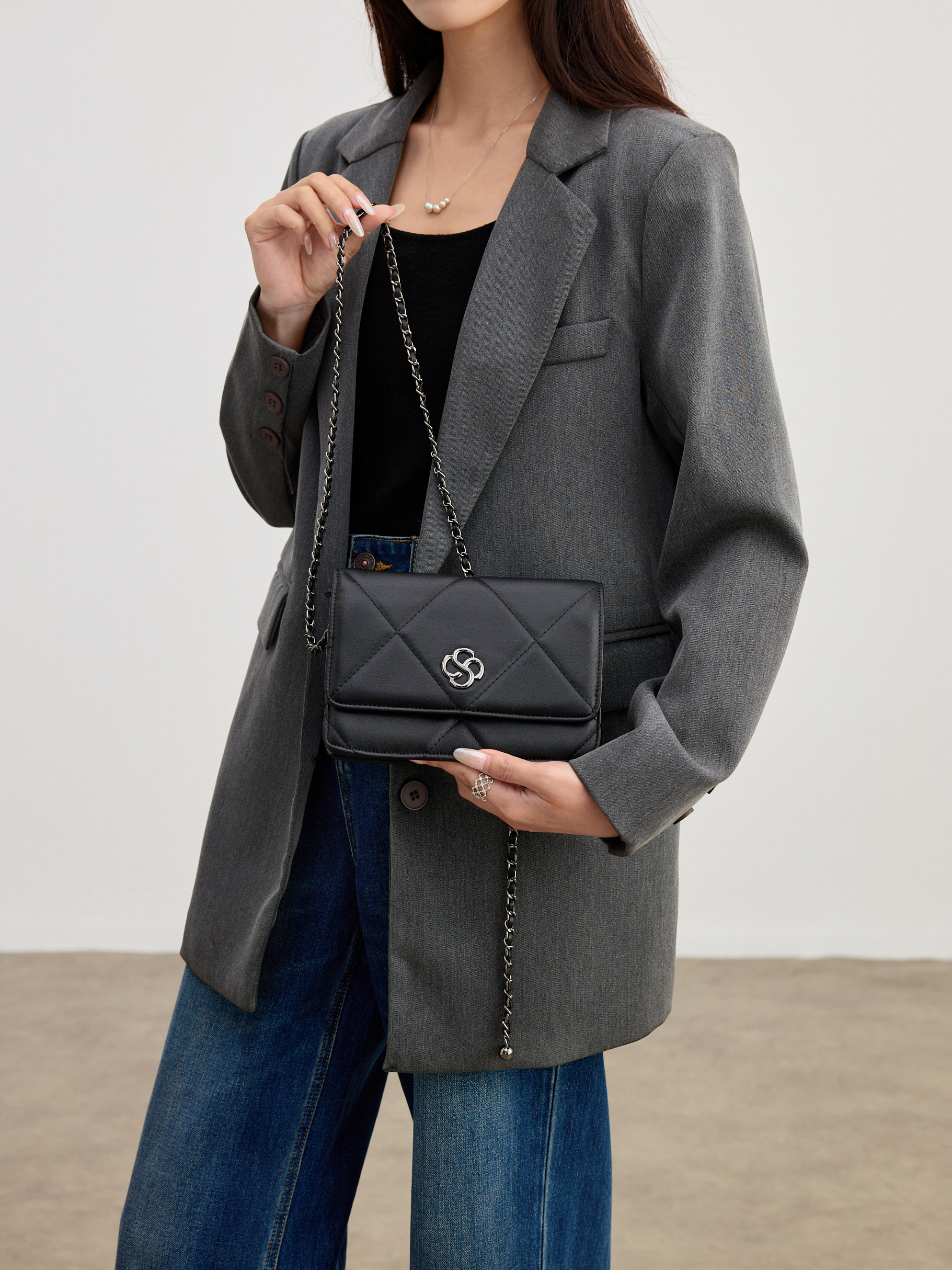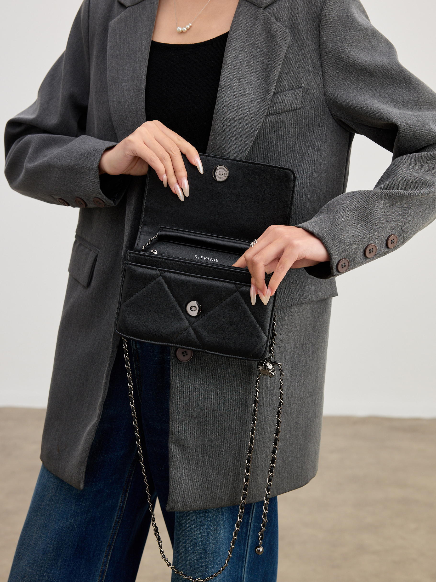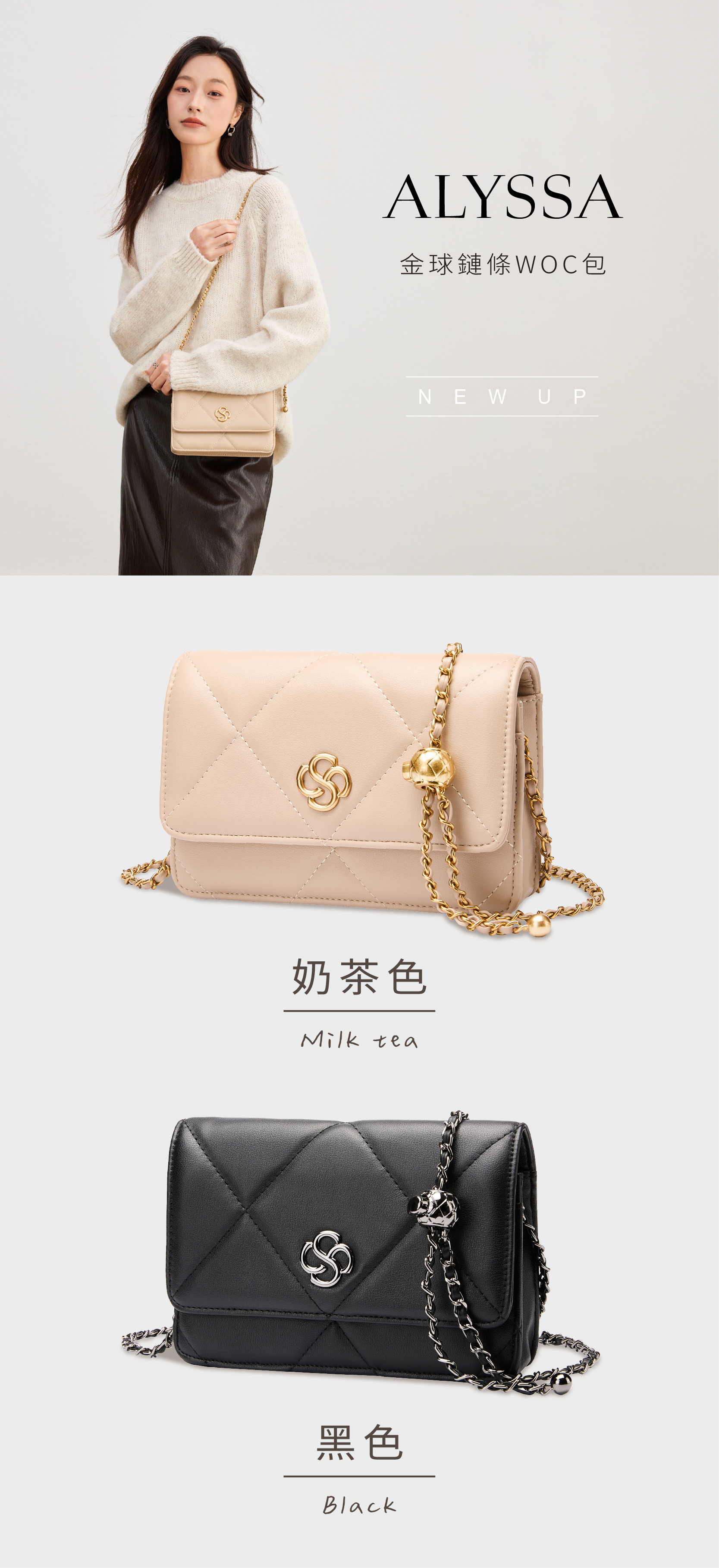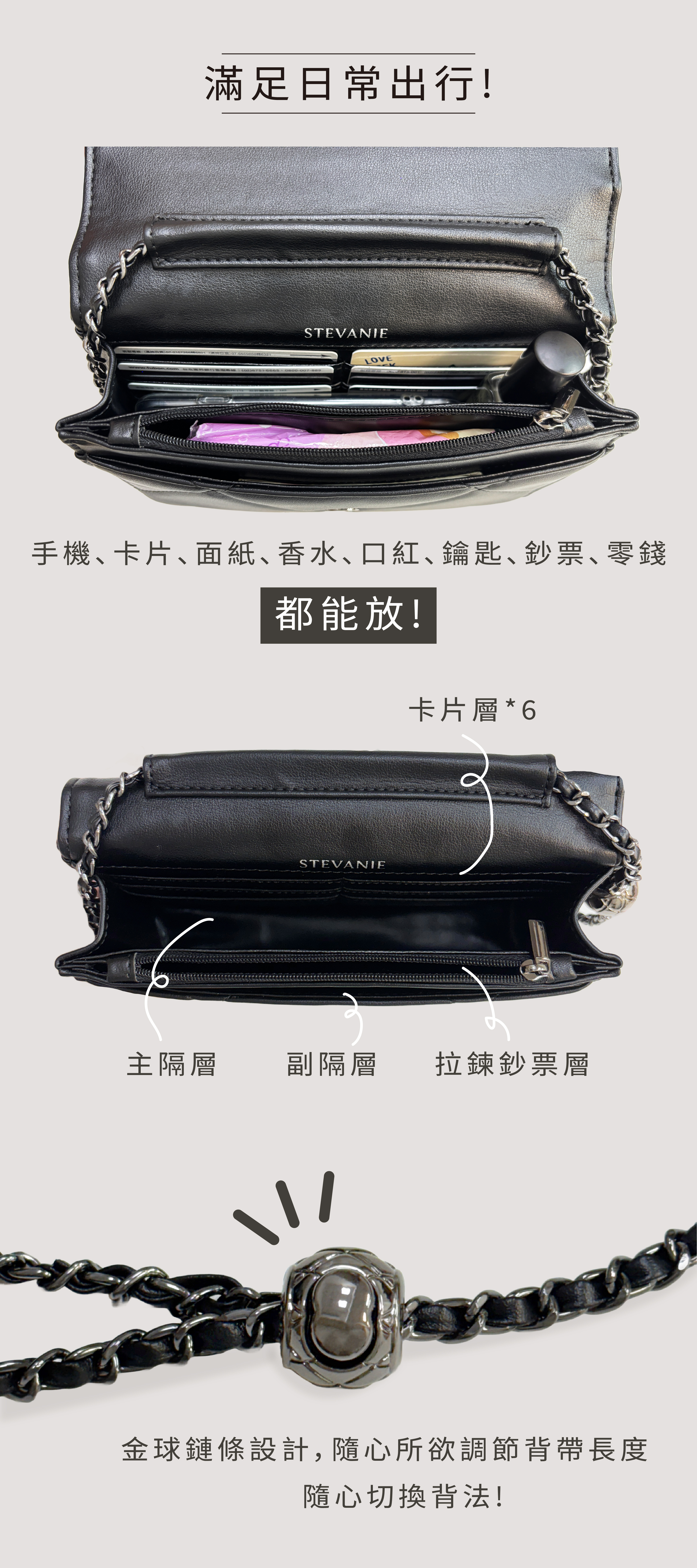 金球鏈條可調節長短,切換肩背、斜背!