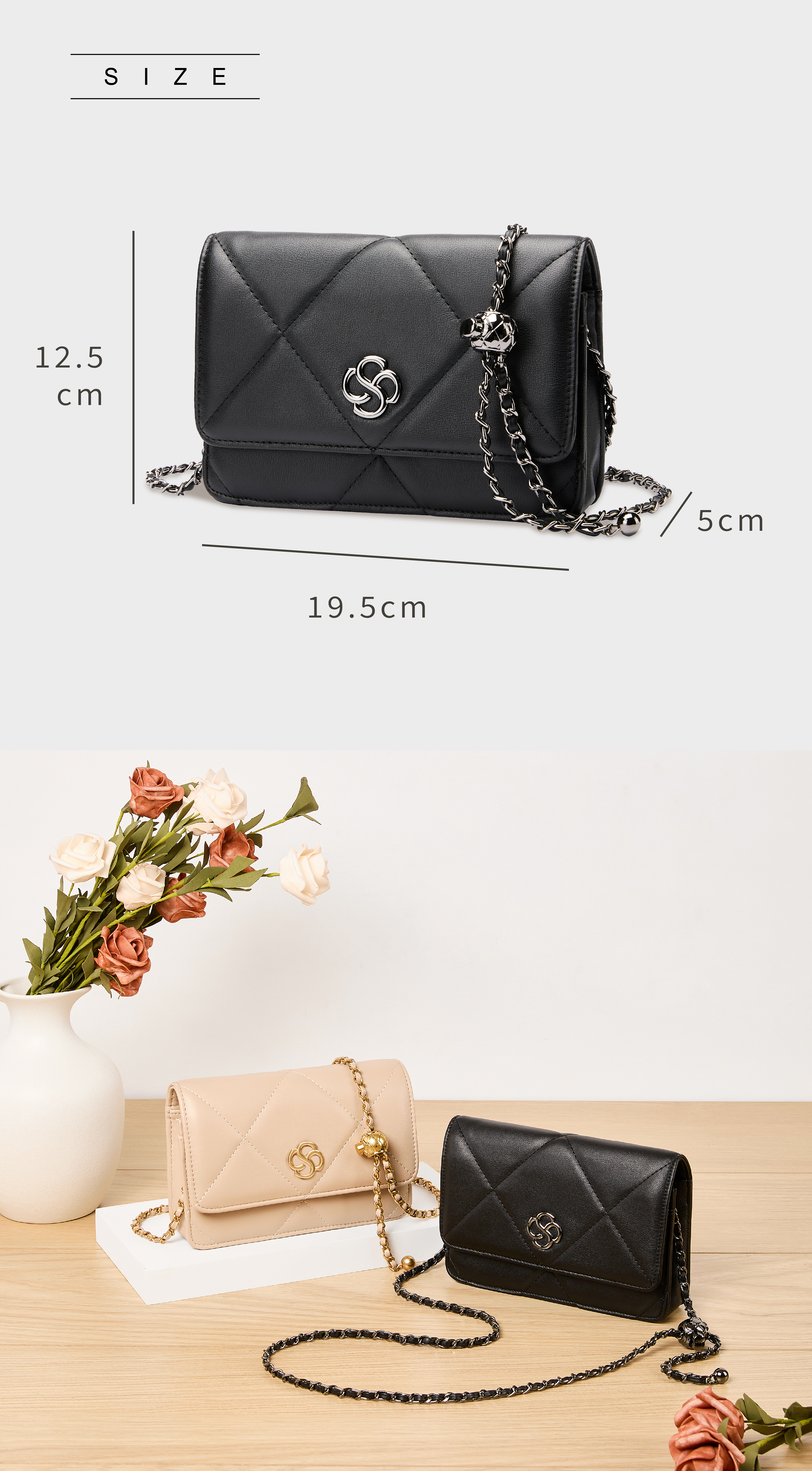 金球鏈條可調節長短,切換肩背、斜背!