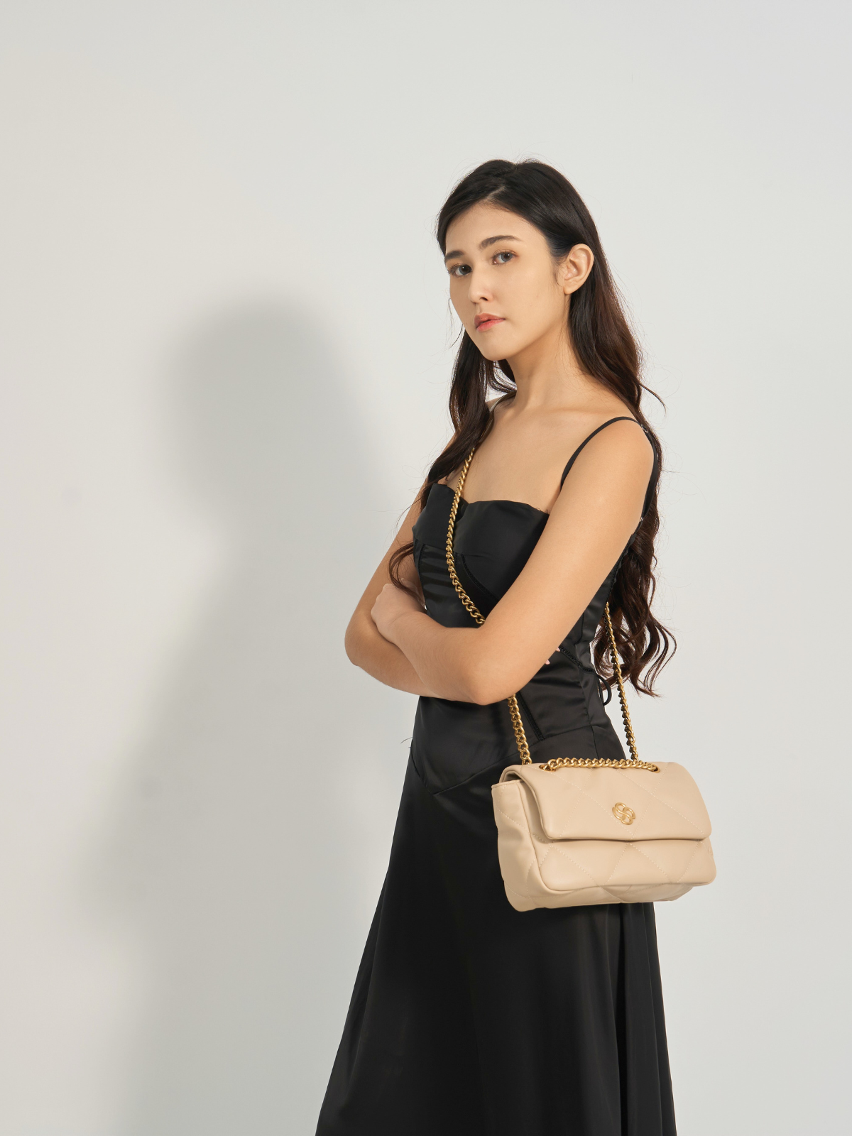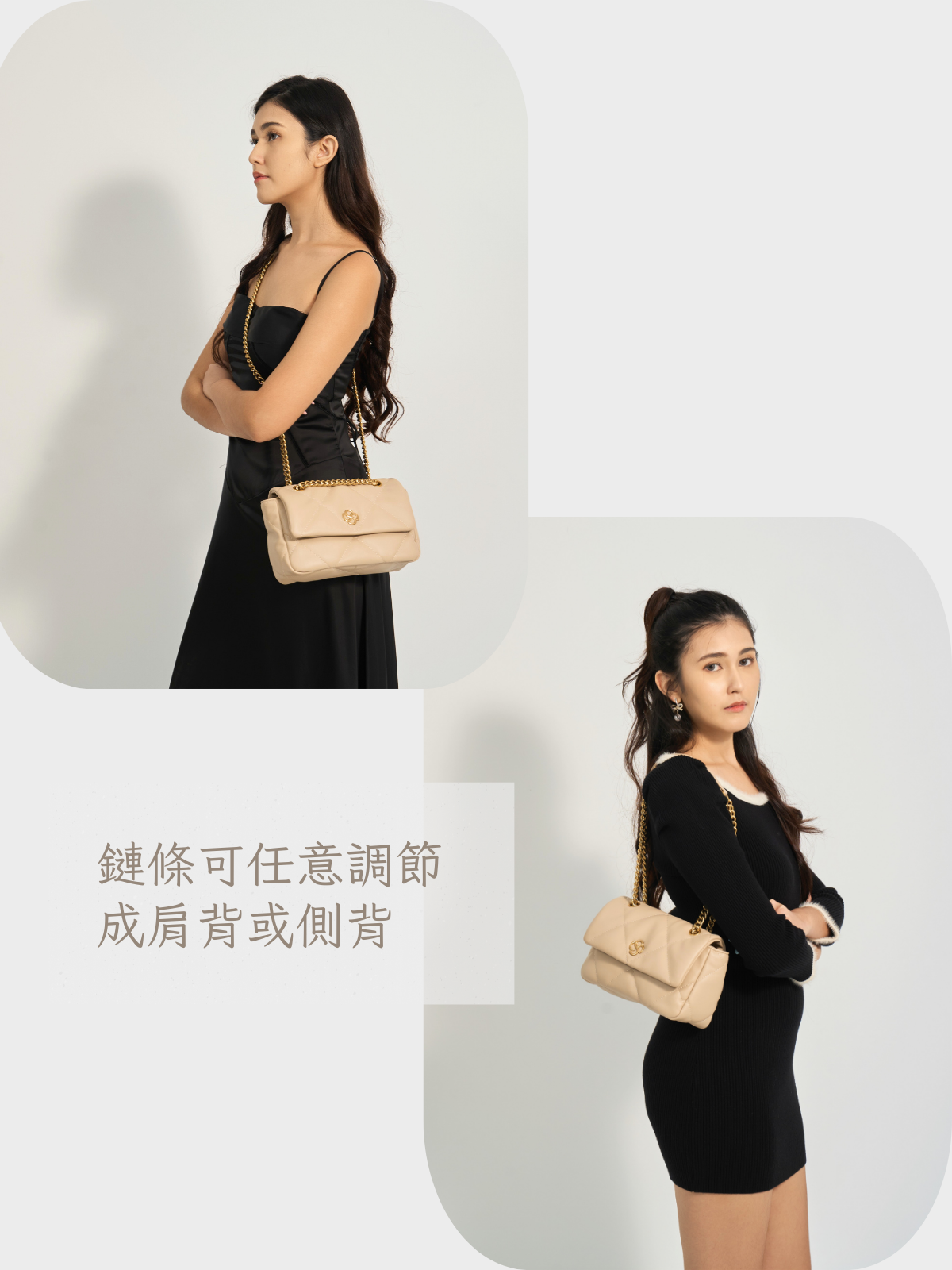 Dual chain design allows for easy switching between shoulder and crossbody styles.