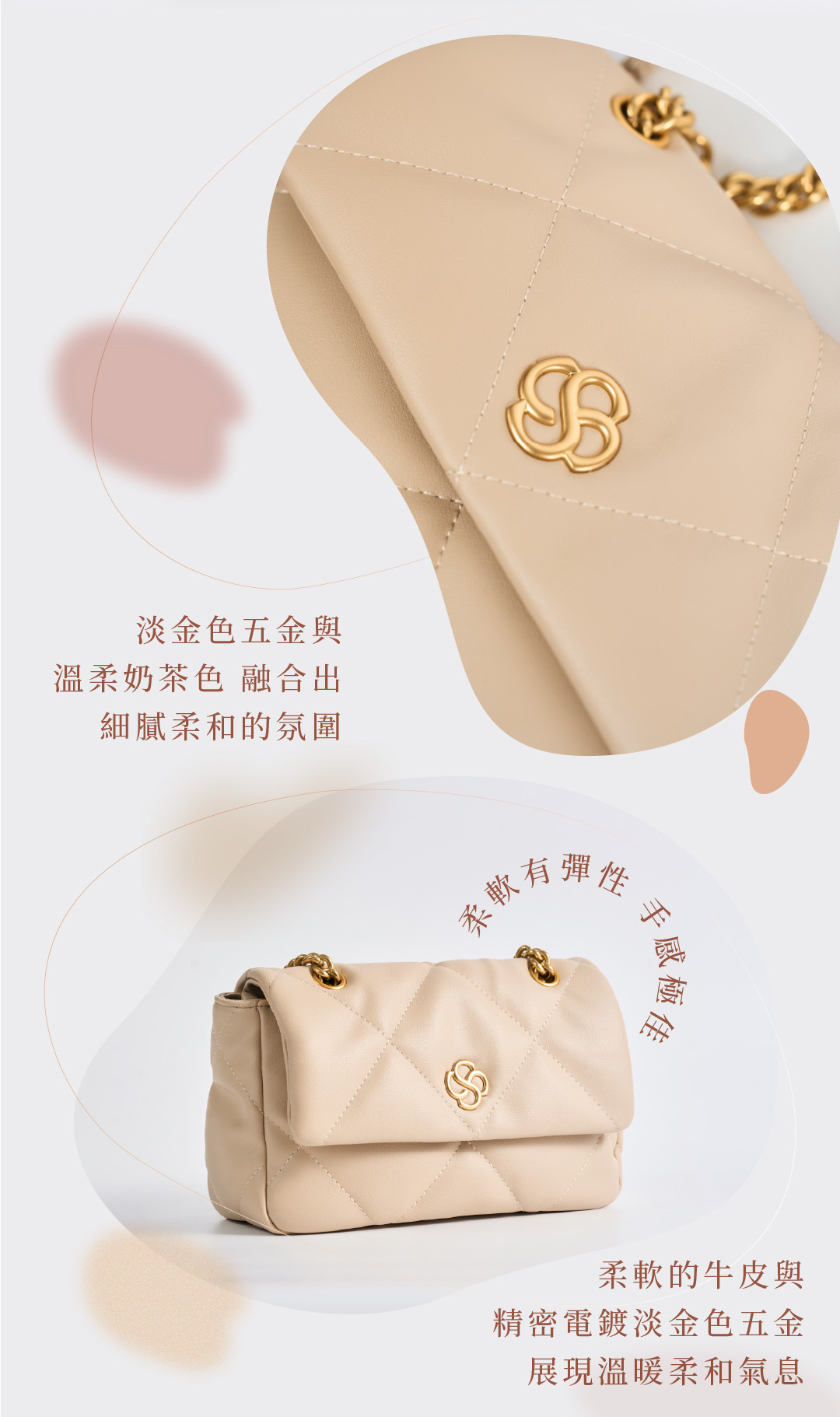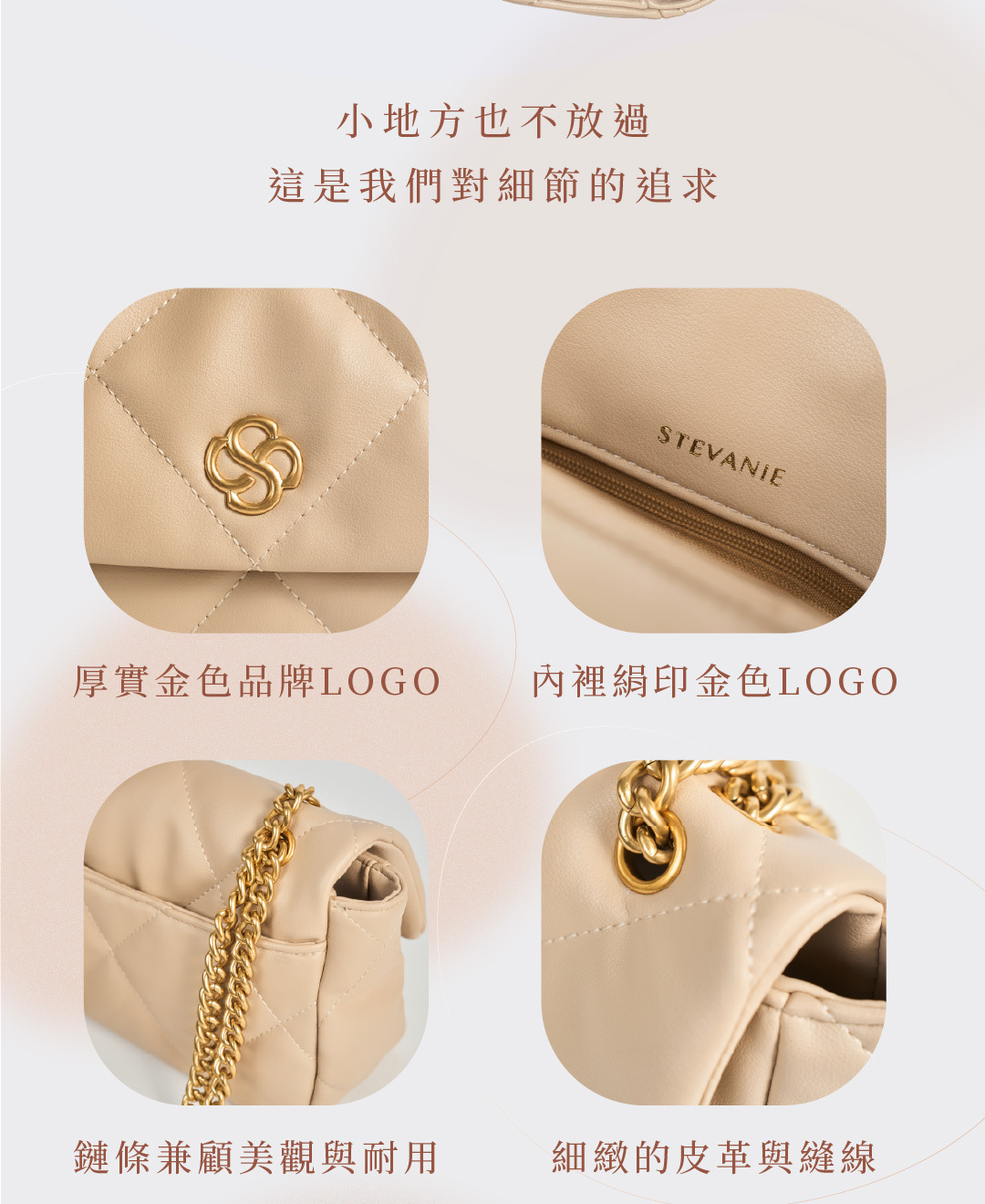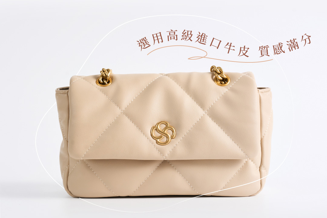 時髦菱格繡花,搭配高級進口牛皮,質感滿分